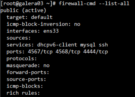 [root@galera03 ~]# firewall-cmd --permanent --add-service=mysql